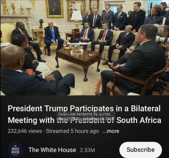 President Trump held a meeting in the Oval Office with South African, President Ramaphosa, They discussed many topics of mutual intrests and grave concern to both countries. I realize the genocide in South Africa should have taken priority and it did.
