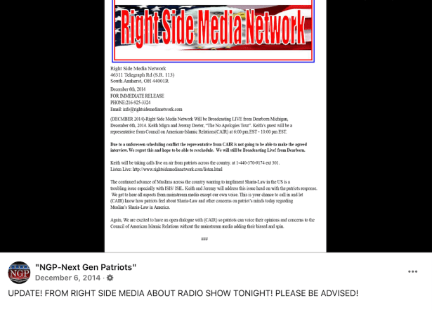 Right Side Media Network was investigating Muslim take over of Dearbornistan, Michigan, CAIR in Dearborn, Michigan in 2014. I worked on occassion and guest with Keith and Right Side Media Network.